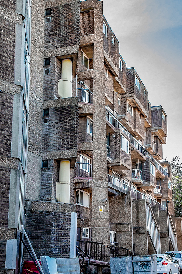 While lacking the scale, vision and Grade II listed-status of, say, its celebrity East End contemporary Balfron Tower, Alina and Noel Moffett’s residential structure is today recognised as a leading example of London brutalism. Its innovative design helped taking postwar urban cluster housing in the UK to the next level. But Ashington House has one crucial, if built-in shortcoming: like many UK council estates, it was done on the cheap. As the structure has not benefitted from sustained levels of maintenance investments since at least 15 years, it is now fast approaching the end of its life cycle.