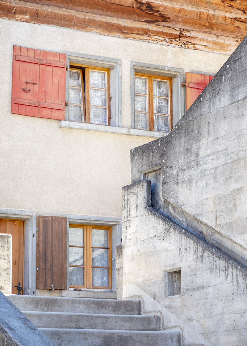 But the journey is not over yet. External stairs lead to the Rue d’Église, where both the post bus stop and the access to the church tower are located. Here, Förderer shows his pragmatist and service-orientated side to best effect. The tower not only houses a library but, at the very top, features a viewing platform. It offers a magnificent panoramic view of the village, the white earth pyramids of Euseigne on the other side of the valley, the snow-covered Dent Blanche and other high-alpine peaks.