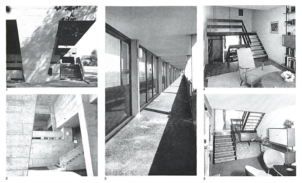 Dubois a réduit et optimisé le concept d'Unité pour répondre aux besoins et aux réglementations locales ainsi qu'aux normes de qualité plus élevées de Saurer. Son projet initial d'un complexe de deux tours a été abandonné pour des raisons budgétaires. Composée de 95 appartements, la structure est divisée en deux unités : la façade sud est réservée aux appartements, tandis que des duplex empilés longent la partie nord. On accède à ces dernières par des passerelles ouvertes. Tous les salons et certaines chambres à coucher sont orientés vers l'ouest et sont disposés soit au niveau inférieur, soit au niveau supérieur de chaque appartement. Les duplex offrent une vue panoramique sur le lac de Constance et l'arrière-pays bucolique de Thurgovie. Le toit n'a pas la piscine de l'original marseillais, mais une institution très suisse : une buanderie commune. Elle rappelle vaguement la passerelle de commandement d'un paquebot, peut-être un clin d'œil à l'obsession nautique de Le Corbusier. Elle surplombe une rangée de neuf séchoirs à linge rotatifs Stewi, soigneusement alignés.
