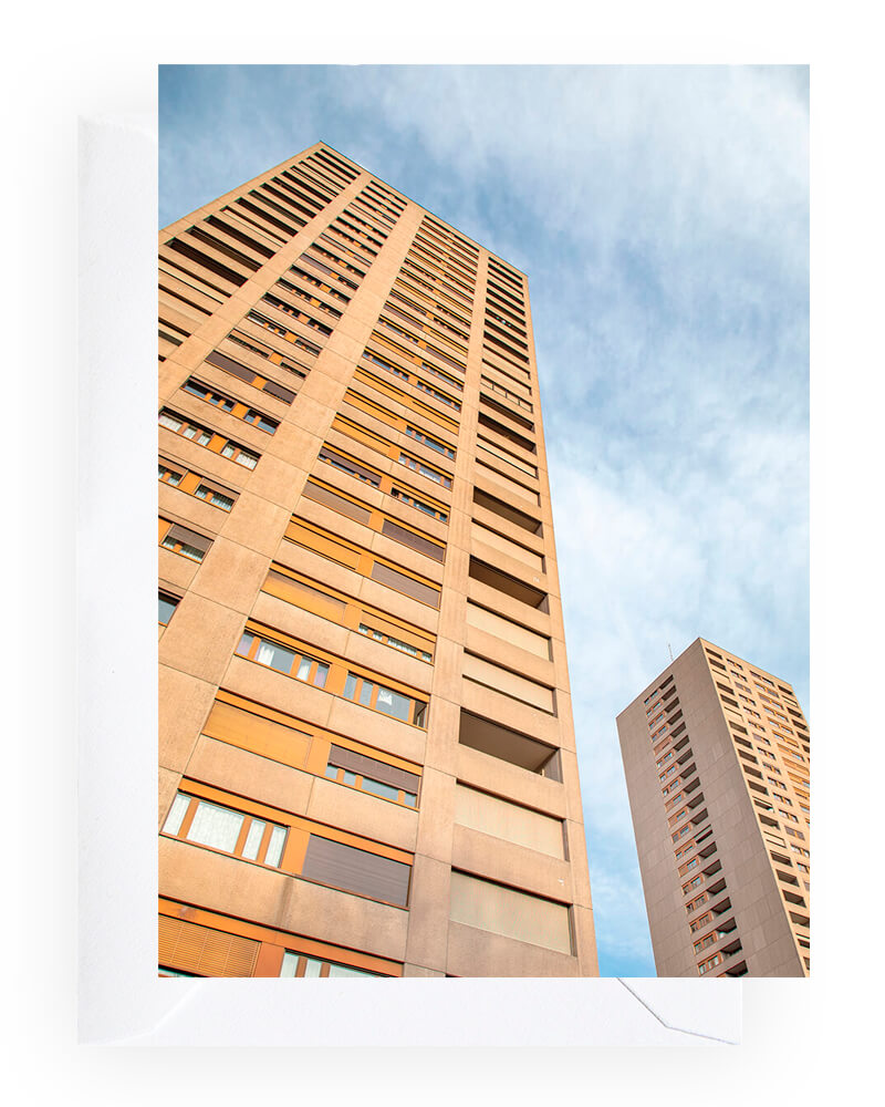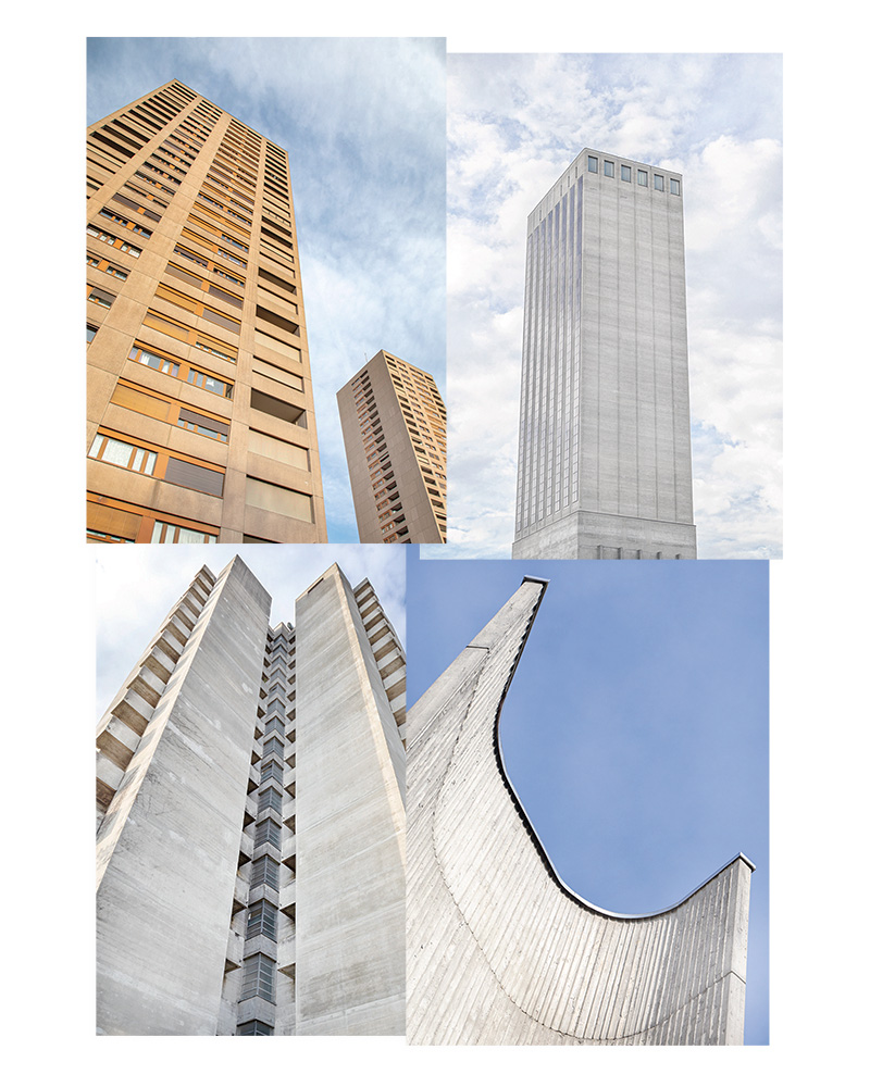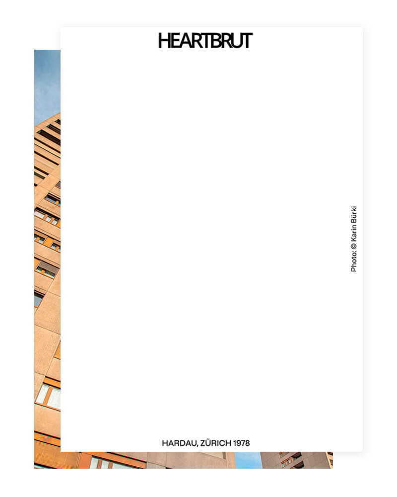 Our new card set unites four striking brutalist icons from Zurich: tough Triemli Tower meets the filigree poetics of the Aula Rämibühl auditorium, while the terracotta-coloured Hardau Towers encounter contemporary brute exclamation mark Swissmill Tower.