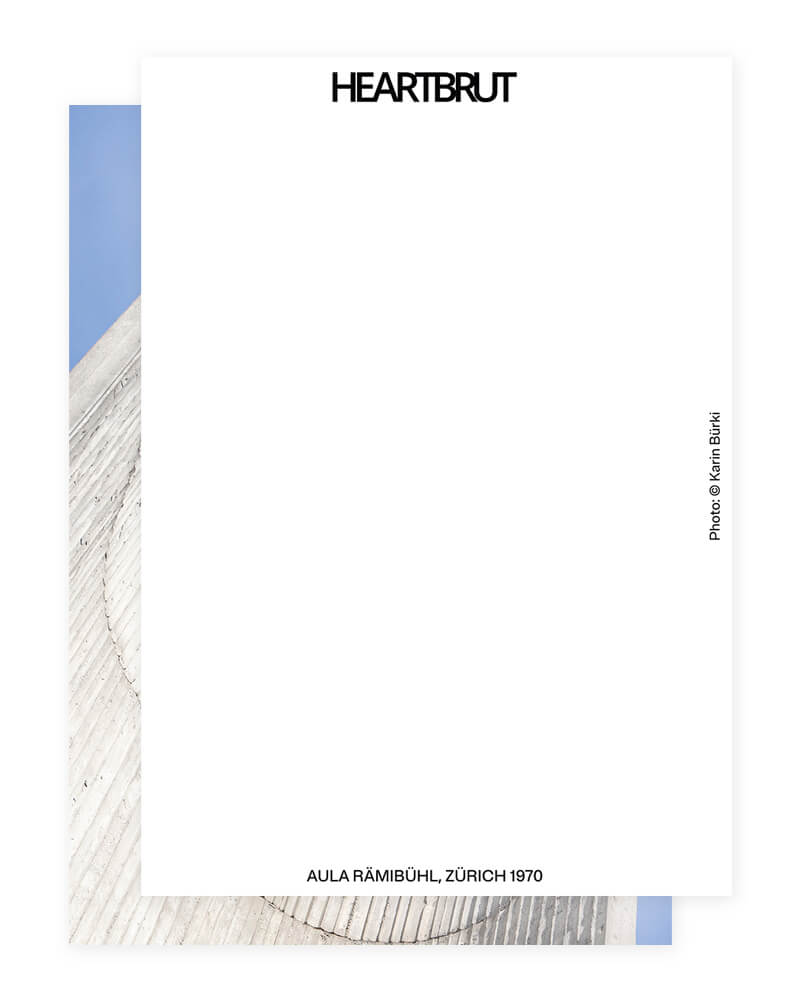 Photographed by Karin Bürki and printed on extra strong and sturdy paper, the small-run Zurich Set has an incredibly silky, soft touch finish and comes complete with four chic envelopes made of premium white recycled paper. All featured cards are also available individually. Set or single? Our new edition is the perfect gift for all lovers of brutalist beauties from Zurich.